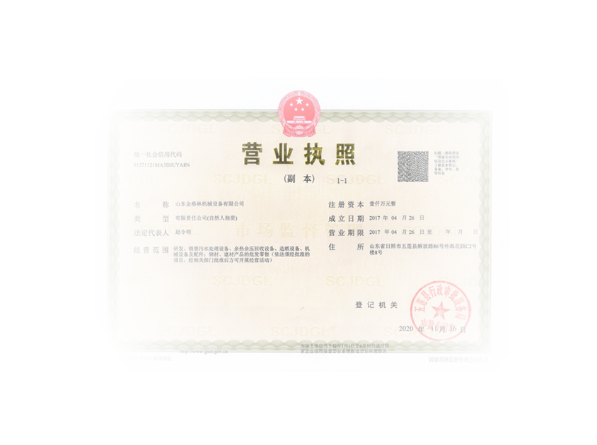 山东金格林机械设备有限公司,是环保机械设备的专业制造企业,注册成立于2017年4月,生产及办公场所位于日照市五莲县城北工业园。